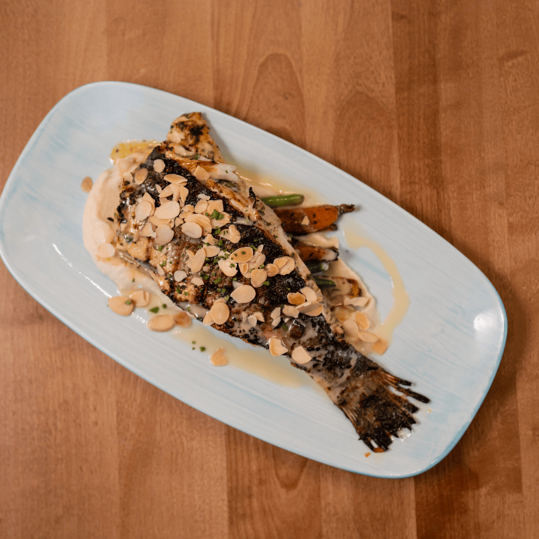 Cauliflower Puree, Carrots & Green Beans, Toasted Almond Lemon Beurre Blanc