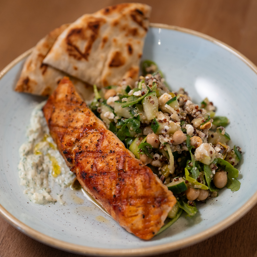 Mediterranean Quinoa Salad, Feta Cheese, Tzatziki, Grilled Pita