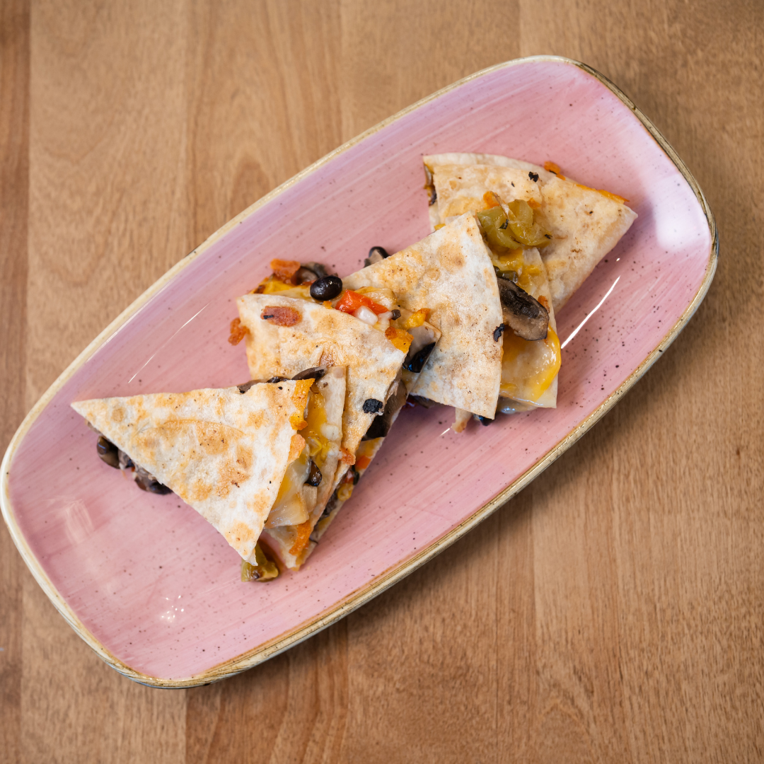 Roasted Vegetables, Black Beans, Jack & Cheddar Cheese, Guac, Crema, Pico & Charred Tomato Salsa