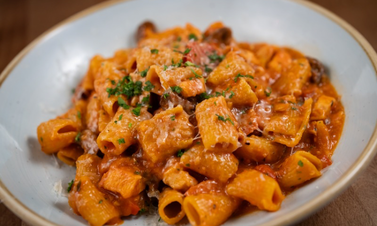 Fresh Rigatoni Pasta, Sweet & Hot Peppers, Mushrooms, Vodka Sauce