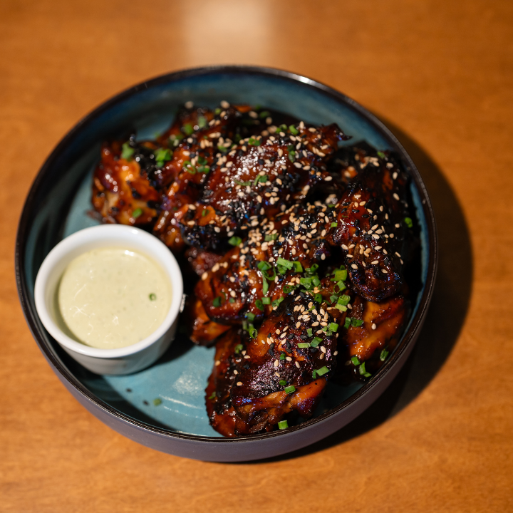 9 chicken wings glazed in a hoisin-ginger sauce with sesame & scallion.