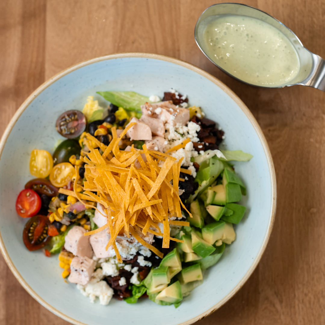 Charred Corn & Black Bean Relish, Avocado, Black Pepper Bacon, Queso Fresco, Crisp Tortilla, Jalapeño Cilantro Ranch