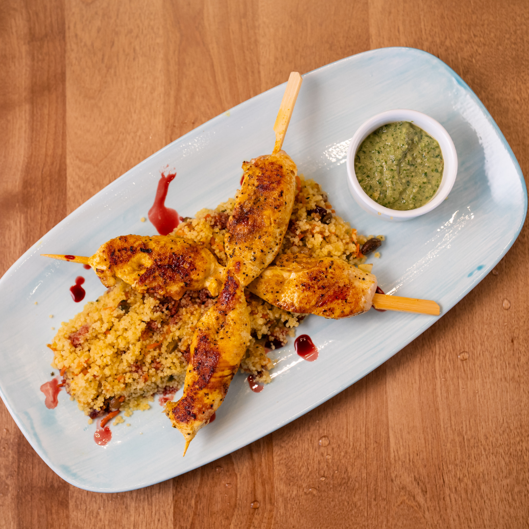 Jeweled Moroccan Couscous, Pistachio, Schug Tahini