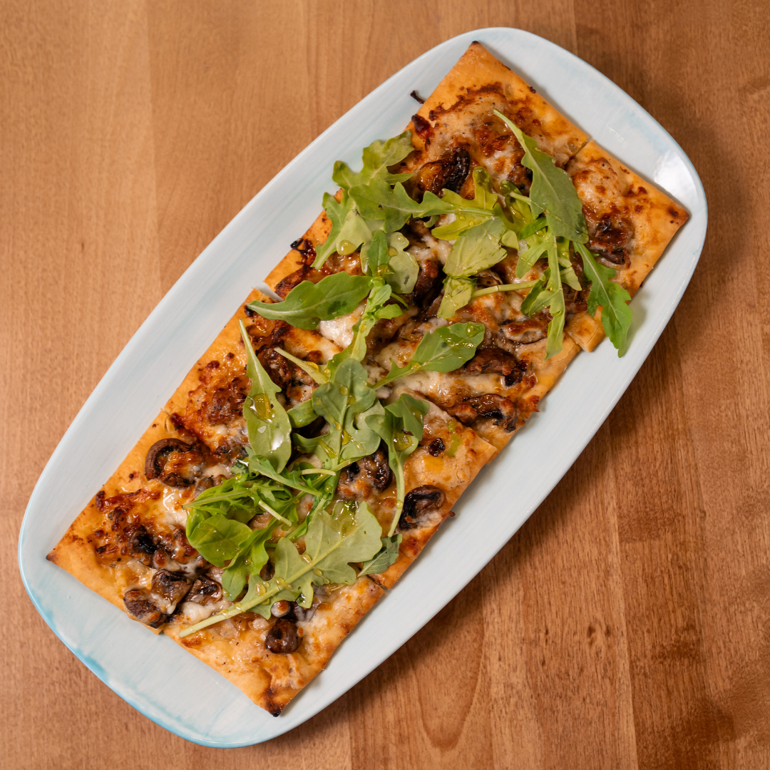 Roasted Cremini Mushrooms, Caramelized Onions, Black Truffle Fonduta, Mozzarella Cheese, Arugula, Truffle Honey